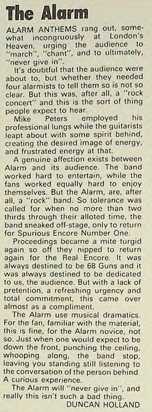 | The Alarm (concert review). Danny Van Emden. Music Week, 22. |