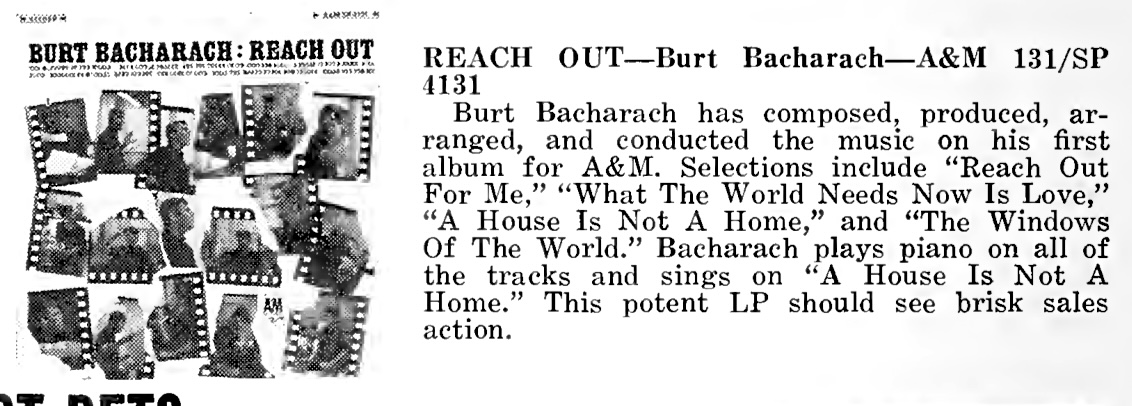 | A&M Records Making March Burt Bacharach Month. Cash Box, 44. |