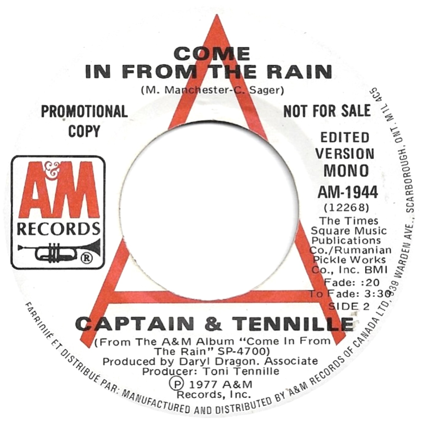 Come In From the Rain/We Never Really Say Goodbye - Captain & Tennille