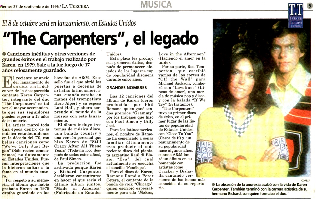 | The Carpenters, el legado. La Tercera. |