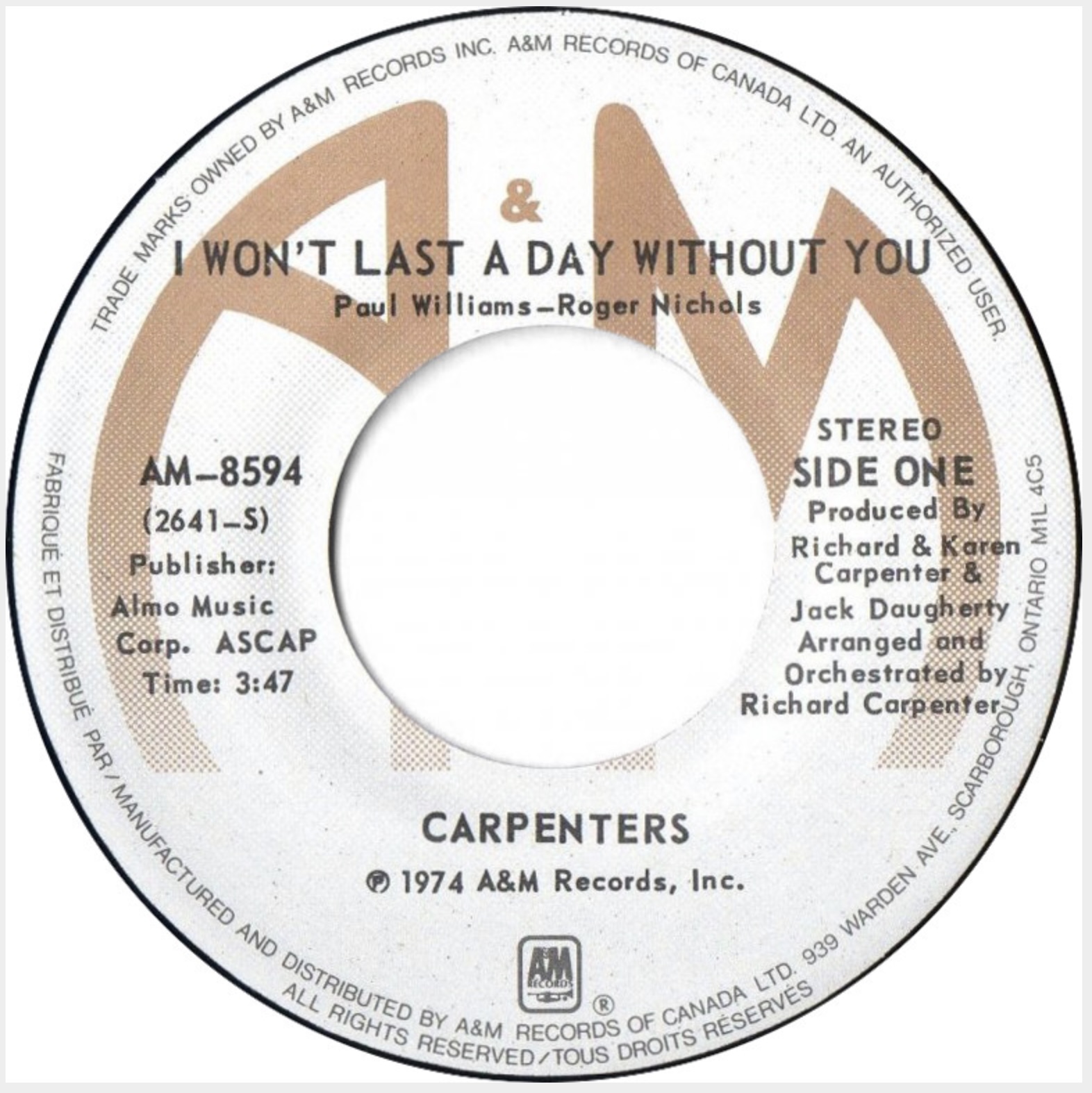 I Won't Last a Day Without You/Only Yesterday - Carpenters