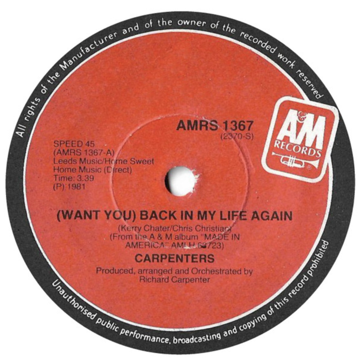 Back In My Life Again (Want You)/Somebody's Been Lyin' - Carpenters