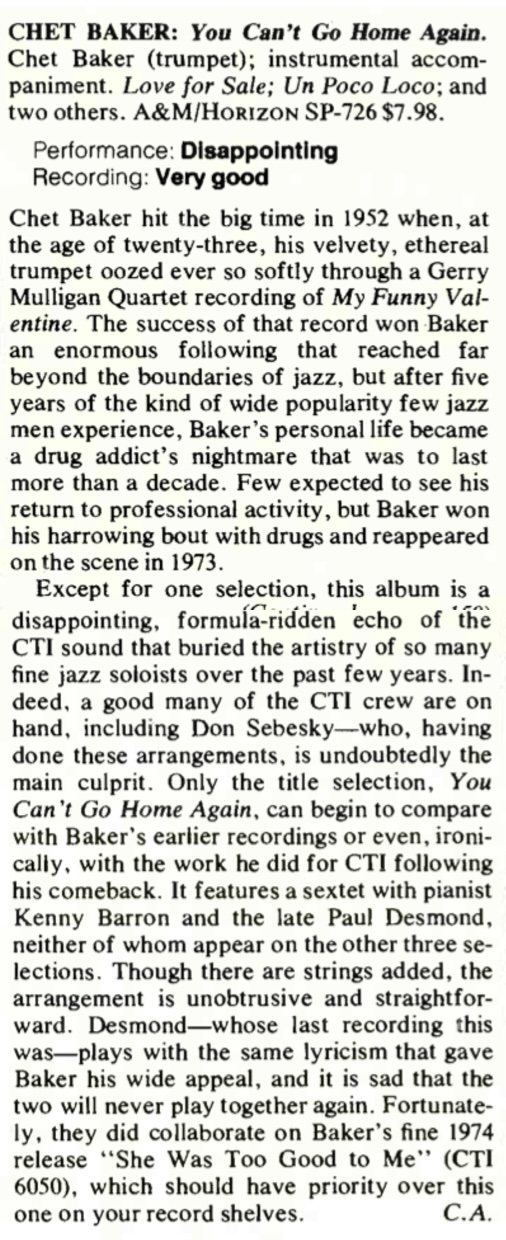 | You Can't Go Home Again (SP 726) review. C.A.. Stereo Review, 148. |