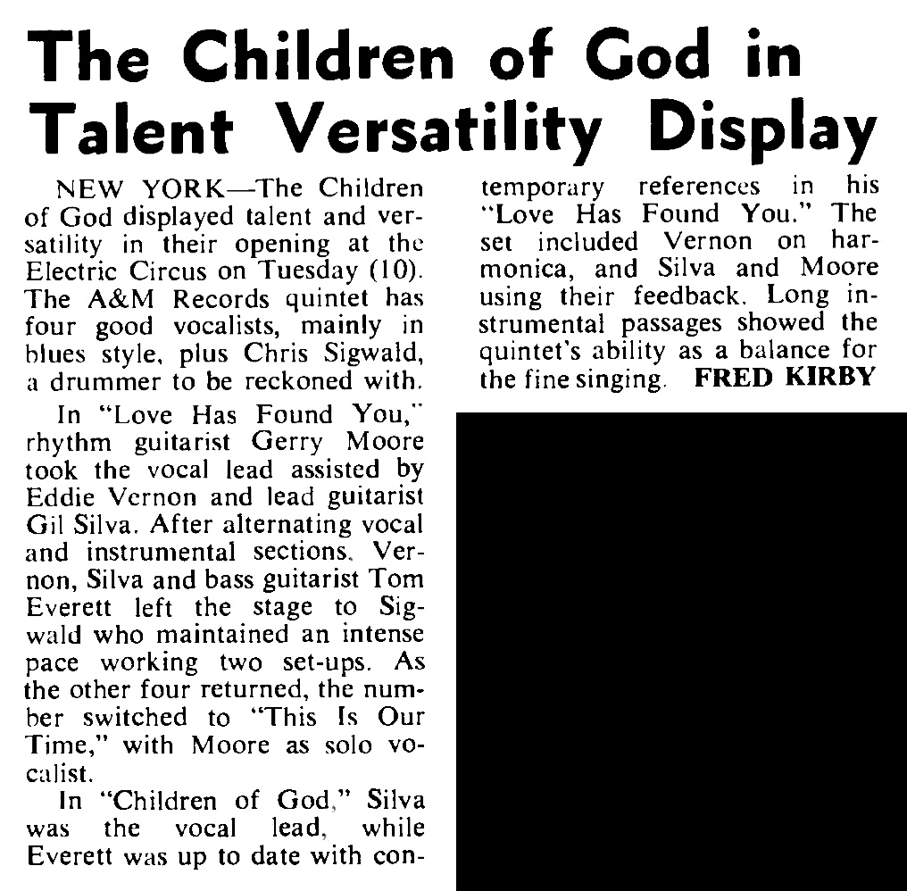 | Children Of God (concert review). Cash Box, 28. |