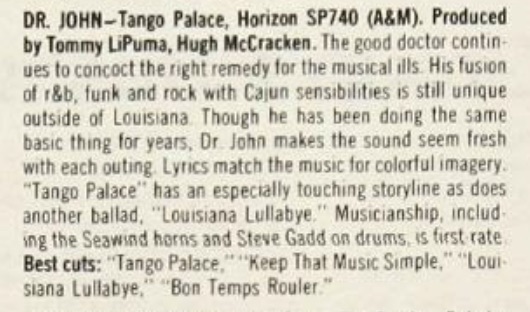 | Rock: Dr. John's Band. Robert Palmer. New York Times. | 1978-11-9 |