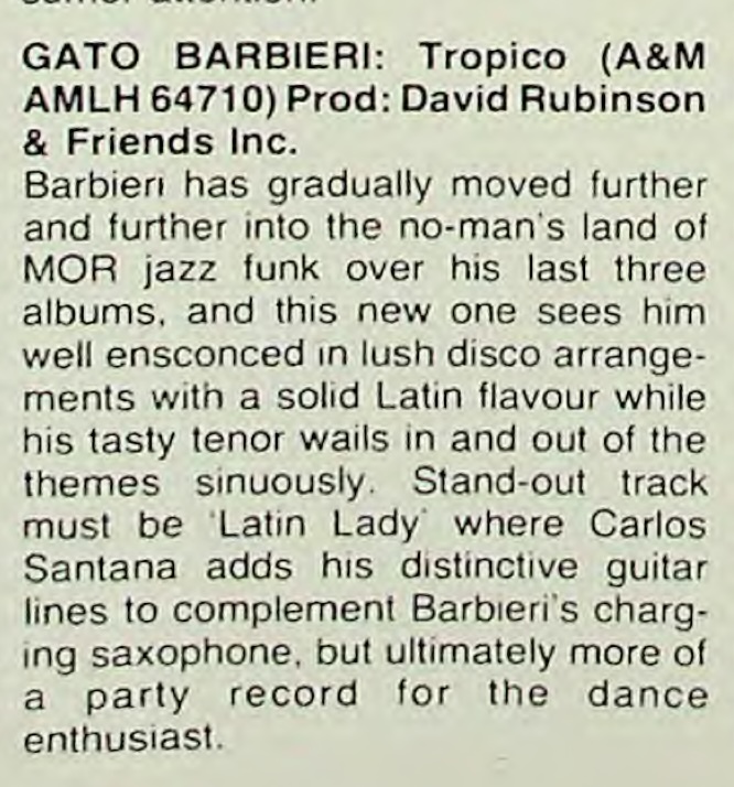| Gato Barbieri: Third World Flavor. Samuel Graham. Record World, 53. |
