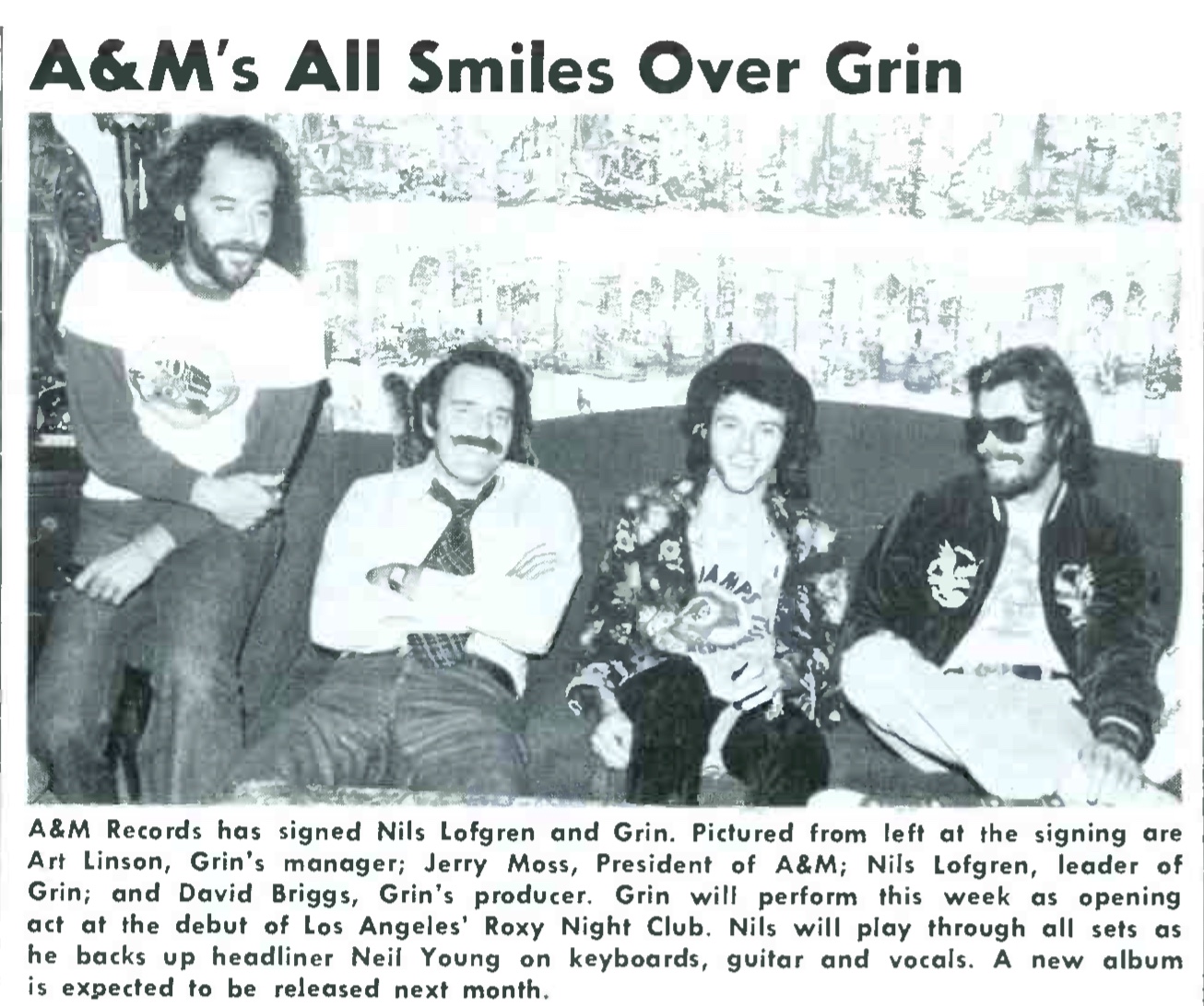 | A&M's All Smiles Over Grin (photo). Record World, 19. |