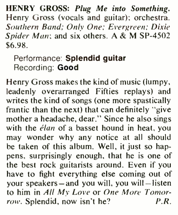 | Henry Gross: Not Freeze-Dried. Creem, 6:22. | 1974-7 |