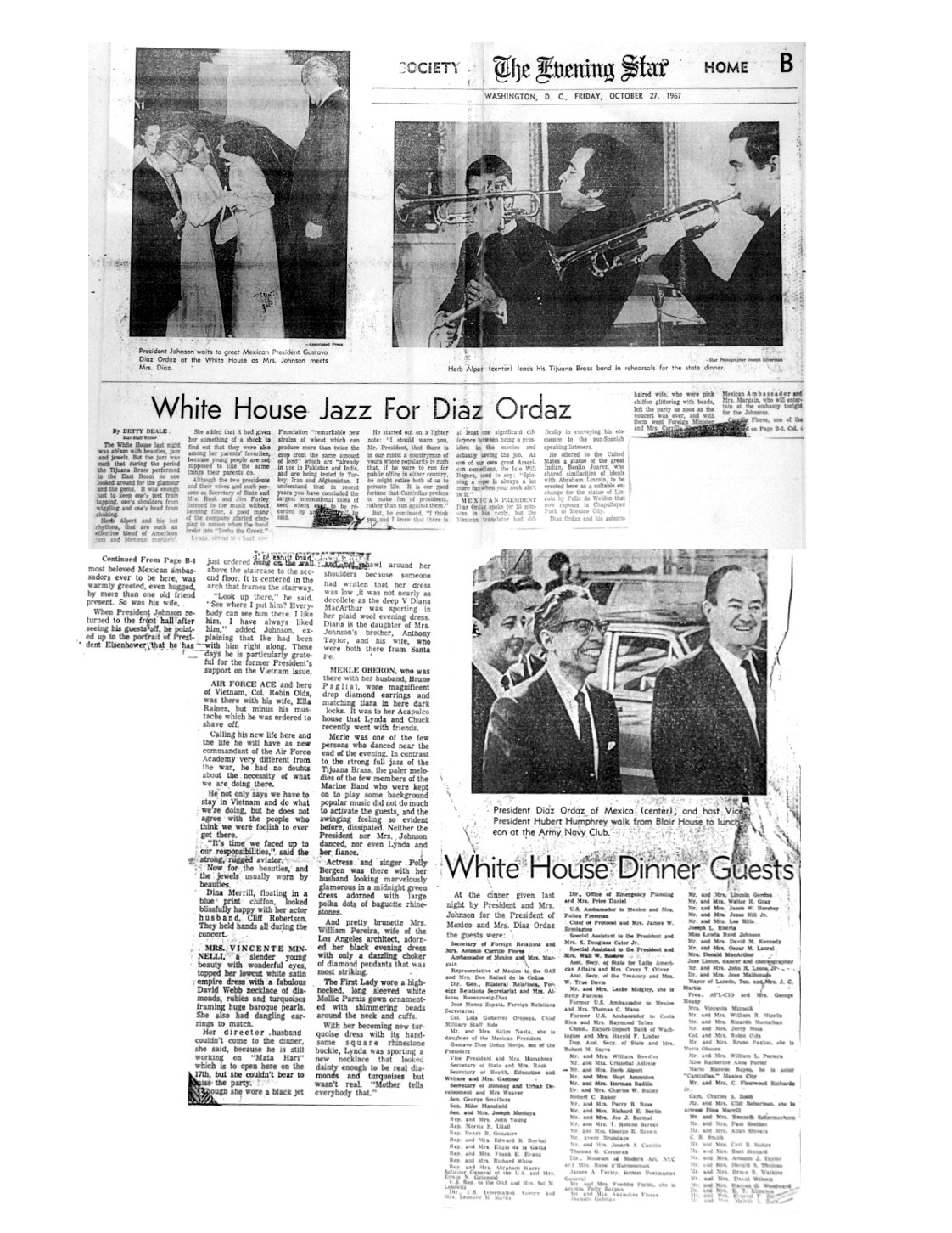 | White House Jazz for Diaz. Betty Beale. The Evening Star (Washington, D.C.), B1. |