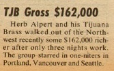 | Alpert and Brass Grossed 170G in Seven Concerts. Billboard, 34. |