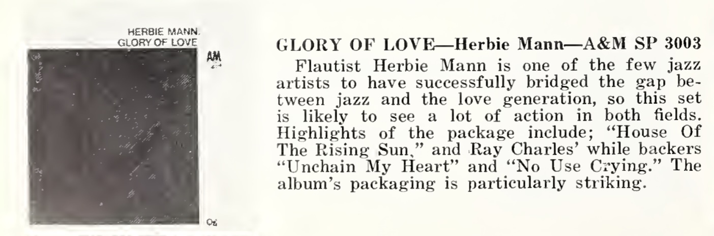 | Glory Of Love (SP 3003) Review. Billboard, 64. |