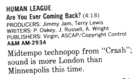 | Human League Takes a Crash Course In Making Hits From Jam & Lewis. B. Doerschuk. Keyboard Magazine, 13:81. | 1987-5 |