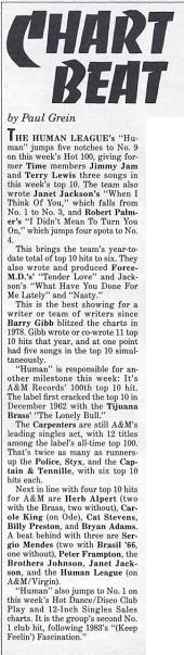 | Chart Beat (Human League, Janet Jackson, Herb Alpert, Carpenters et al). Paul Grein. Billboard, 6. |