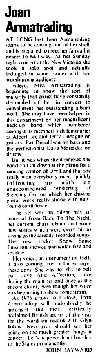 | Joan Aramtrading (Review). Richard Williams. Melody Maker. | 1976-8-7 |