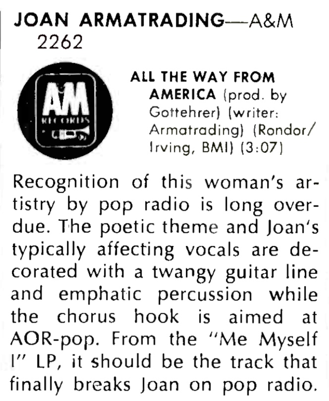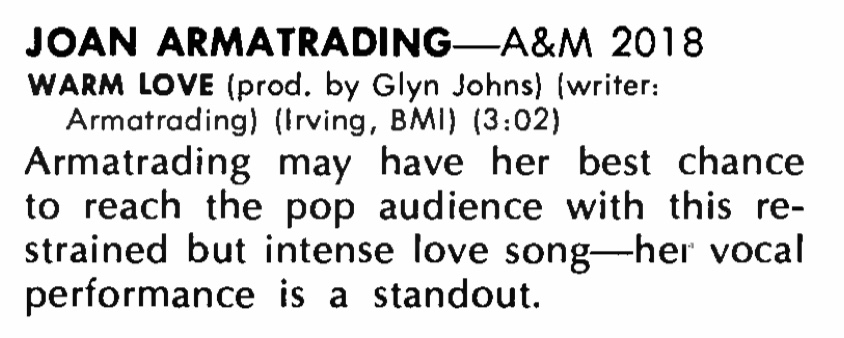 | Joan Armatrading (SP 4588) review. Billboard, 68. |