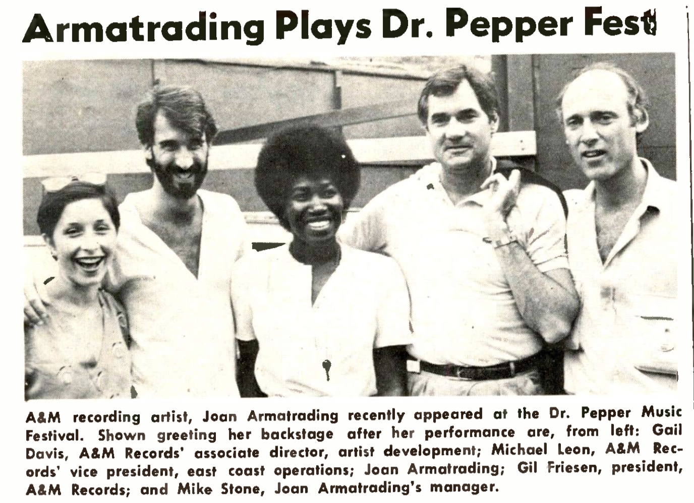 | Armatrading Plays Dr. Pepper Fest (photo). Record World, 19. |