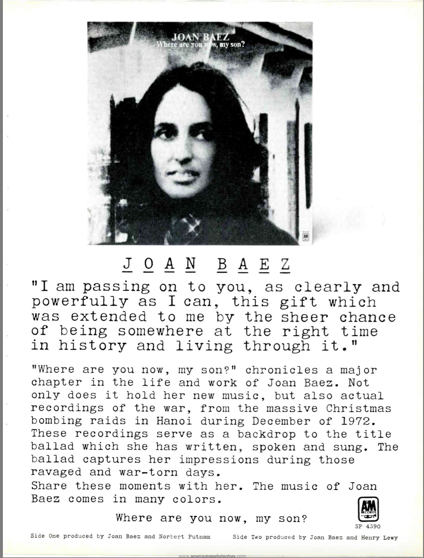Where Are You Now, My Son? - Joan Baez