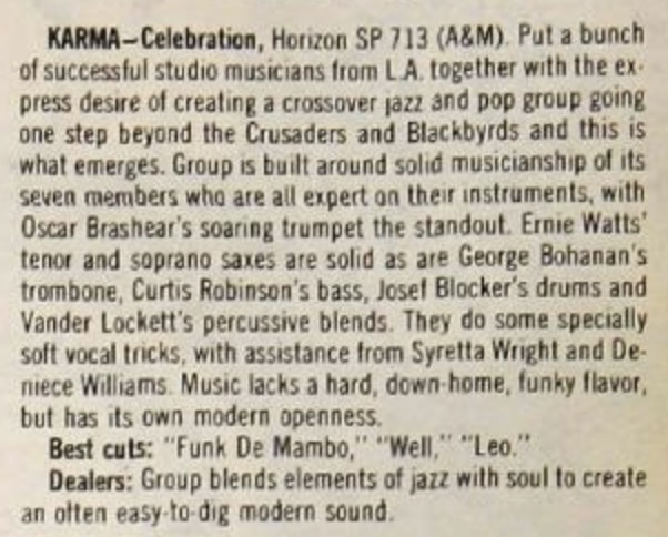 | Reviews: Celebration (SP 713). Billboard, 66. |