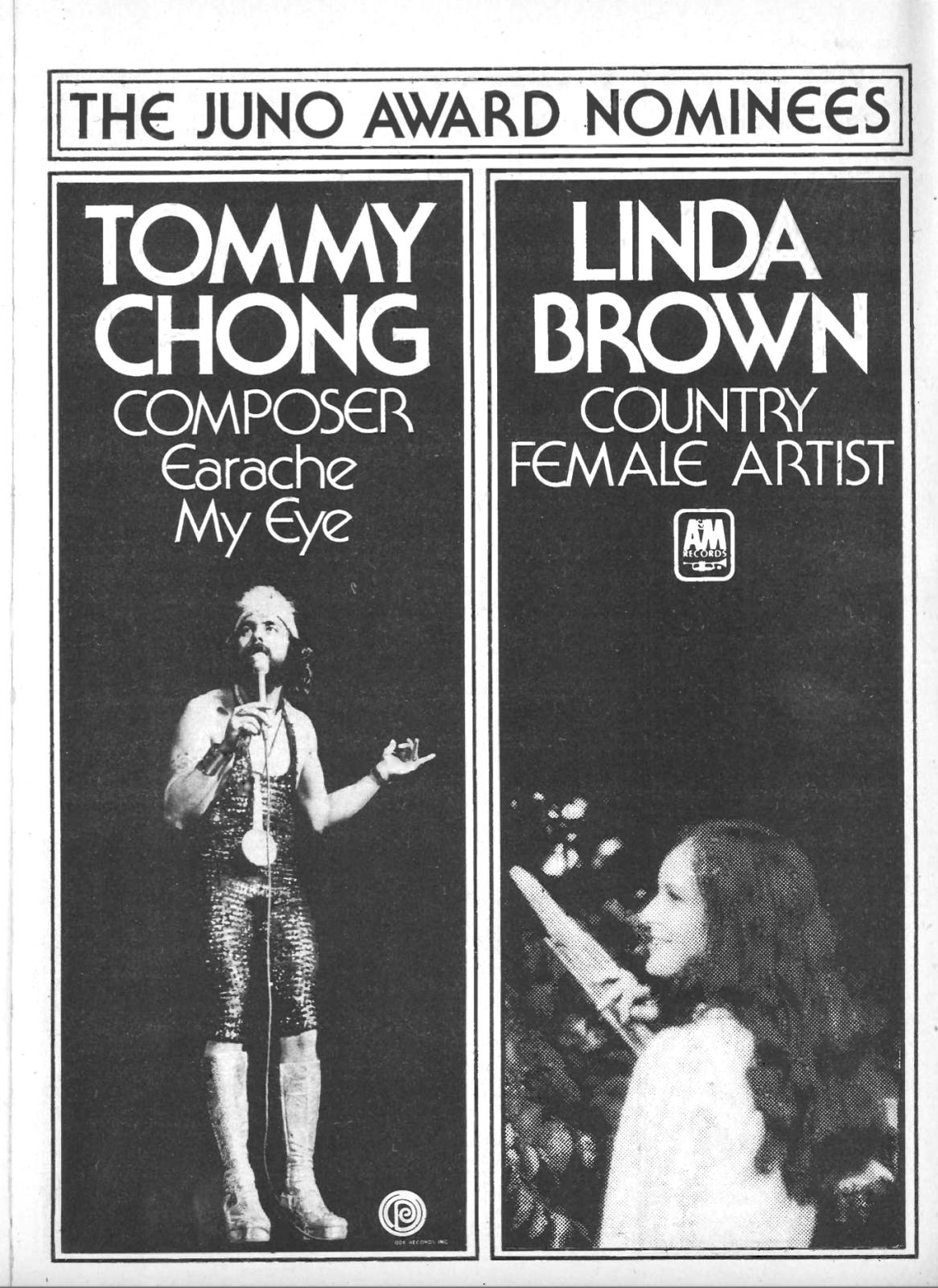 Linda Brown 1975 Juno Nominee ad