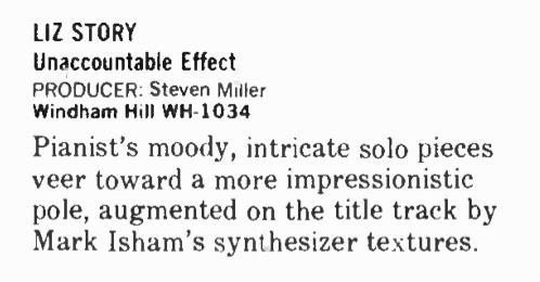 | An Evening With Windham Hill Live (record reviews). Don Heckman. High Fidelity, 34:100. | 1984-1 |