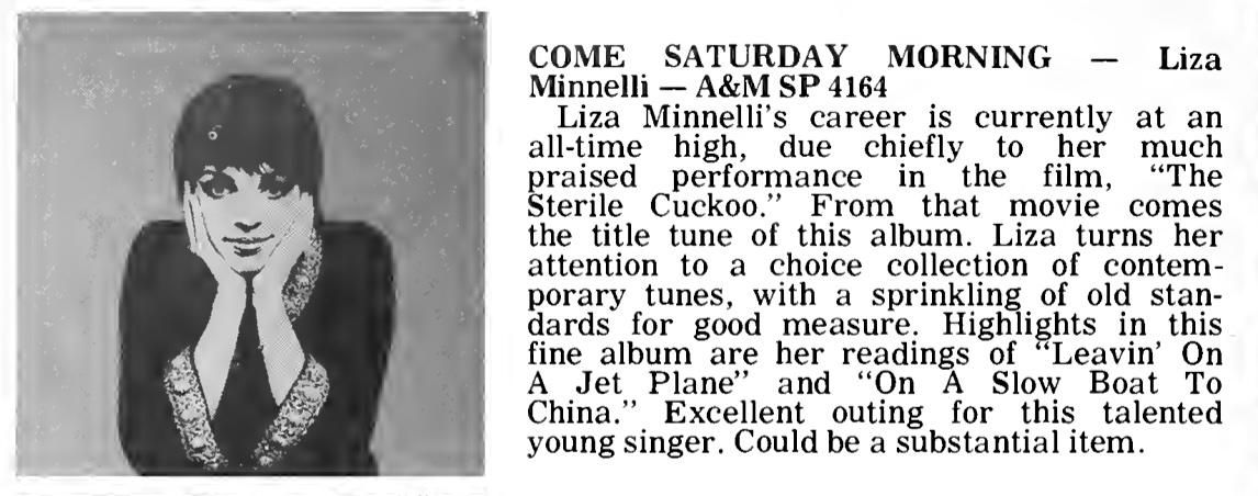 | Liza Minnelli (SP 4141) Review. Record World, 16. |