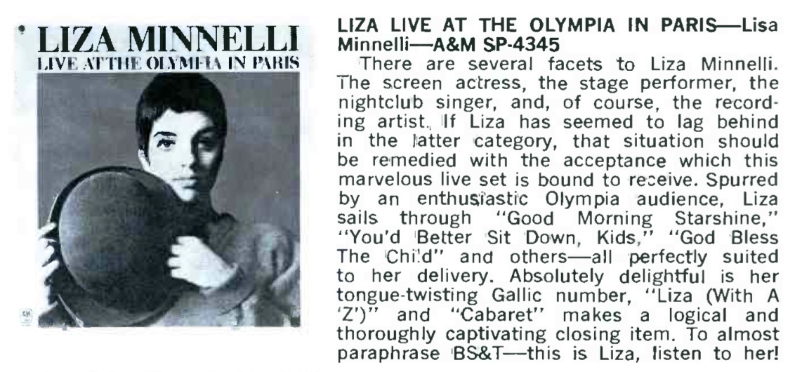 | Liza Live Album On A&M. Cash Box, 14. |