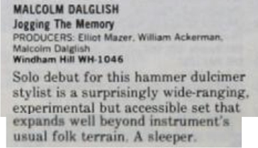 | Morning Walk (compact disc reviews). USA Today, 117:97. | 1988-7 |