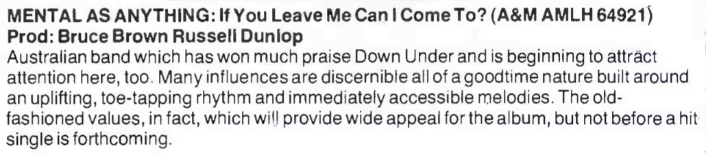 | Mental As Anything Firm Up Canadian Tour. RPM, 7. |