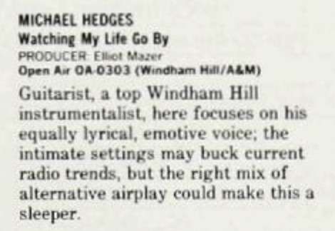 | Michael Hedges. M. Hanson & P. Hood. Frets, 8:34-40. | 1986-11 |