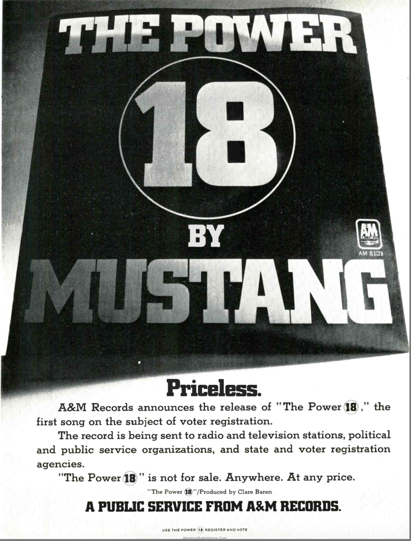 Picture sleeve. Promotional only single to promote voter registration For 18-year-olds
