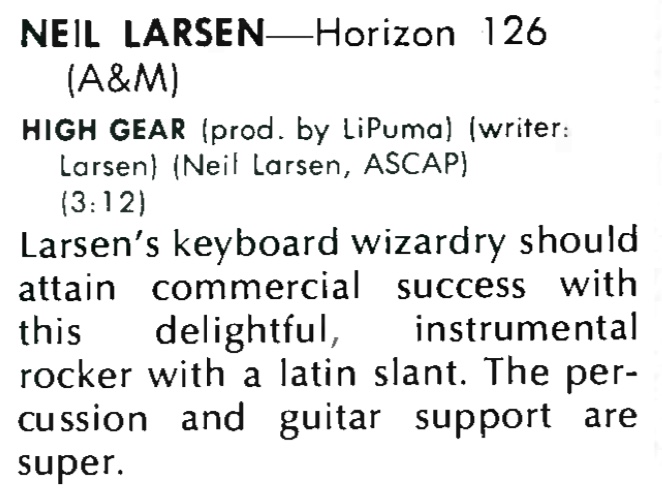 | Reviews: High Gear (SP 738). Billboard, 72. |