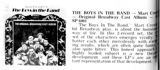 | The Boys In the Band (SP 6001) review. Cash Box, 34. |
