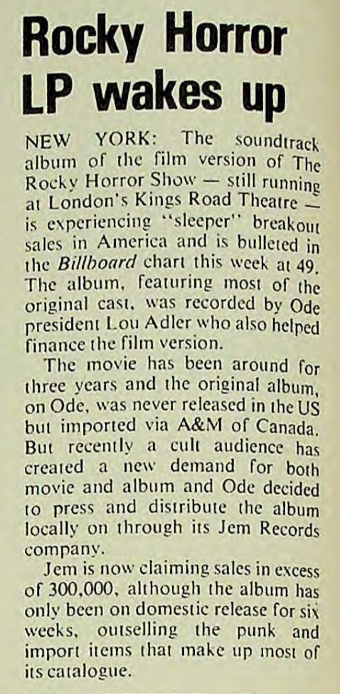 | Rocky Horror LP Wakes Up. Music Week, 4. |
