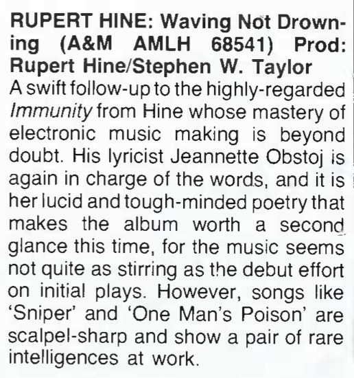 | Waving Not Drowning (AMLH 68541) review. Record Business, 19. |
