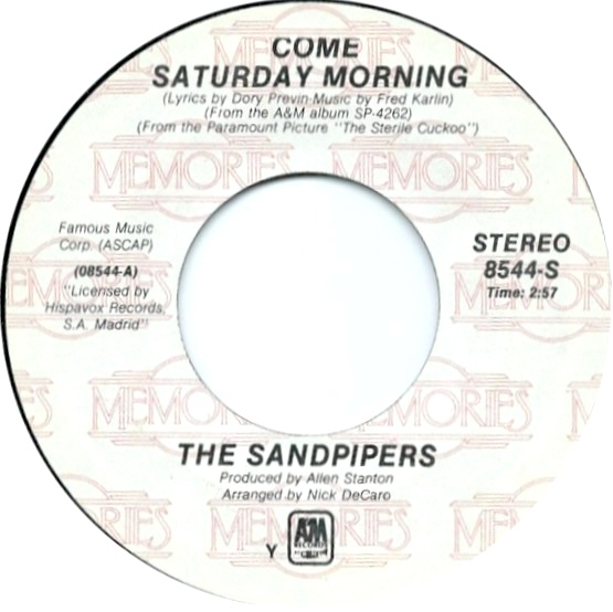 Come Saturday Morning/The Wonder Of You - Sandpipers