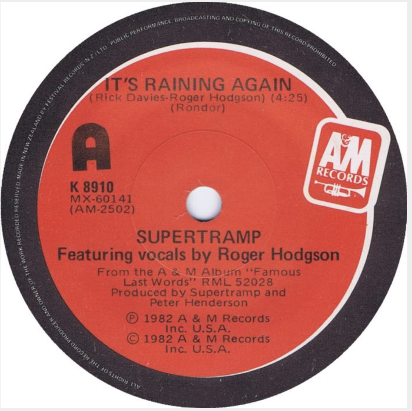 | 1 | It's Raining Again | 00:00:00 |