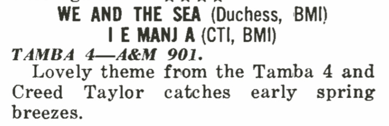 | Tamba 4 (concert review). Cash Box, 32. |