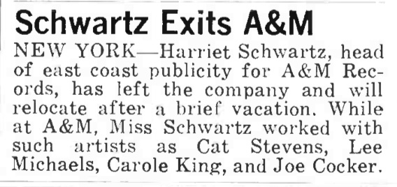 Schwartz Exits A&M. Record World, 18.