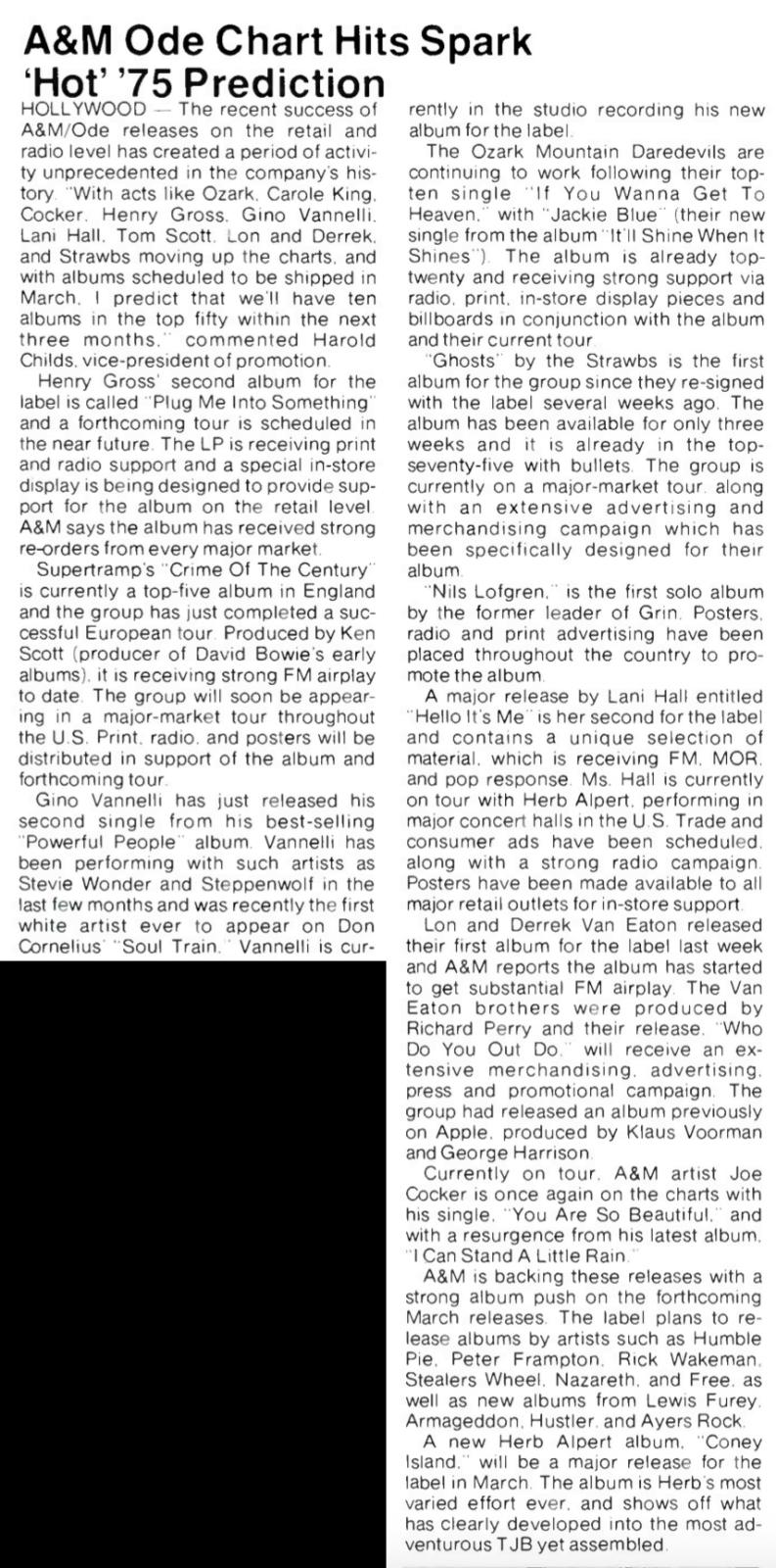 A&M Ode Chart Hits Spark 'Hot' '75 Prediction. Cash Box, 16.