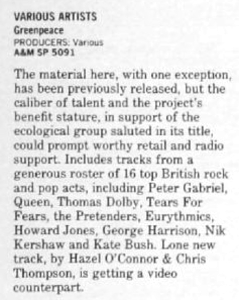 | Hazel O'Connor & Chris Thompson | 9 | Push and Shove | 00:04:15 |